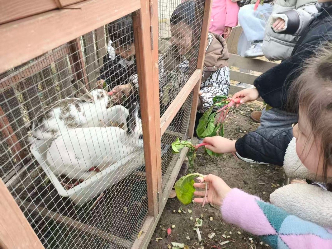 孩子们通过日常的投食、清理兔舍,见证了兔宝宝的生长变化。蹲下小小的身子,轻轻地递过菜叶,看着兔宝宝嘴巴一动一动地吃着,孩子们的眼睛里闪着光,脸上洋溢着幸福的微笑。“它喜欢吃菜叶、不要大声说话吓着它哦!”稚嫩的的对话里,藏着课堂上学不到的珍贵一课——生命教育。一次次喂食的专注,一次次轻轻的抚摸,胜过千言万语,教育最美的样子,不就是让童年浸透这样的温柔瞬间吗!